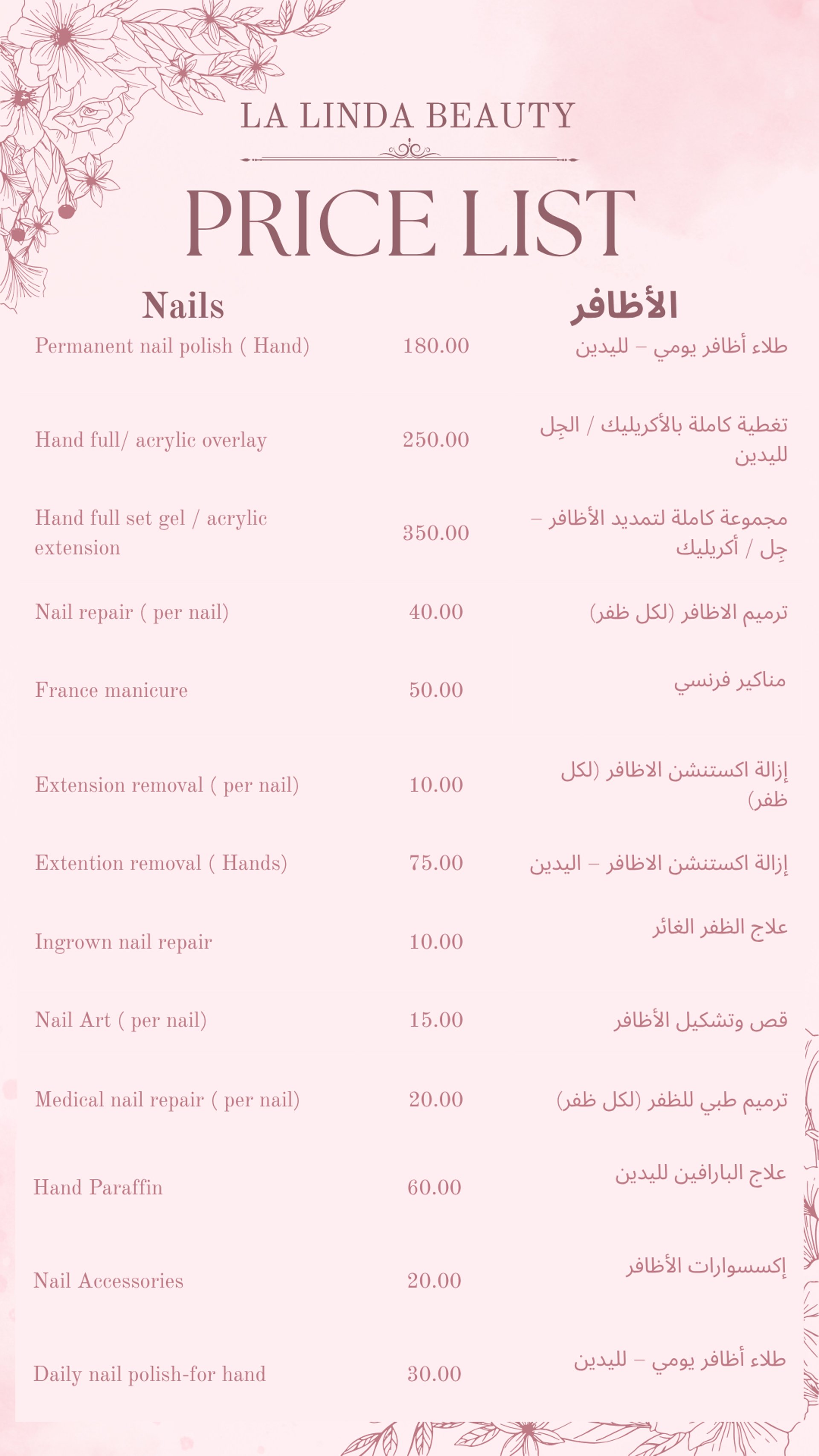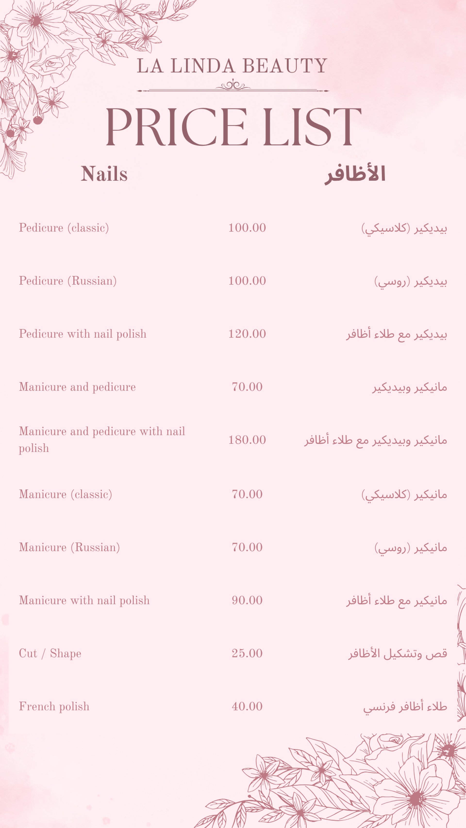 دلّلي يديك وقدميك بعناية خبيرة في المانيكير والباديكير، باستخدام منتجات فاخرة لنتيجة نهائية مصقولة تدوم طويلاً.